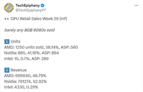 8GB显存真就没人要:RX 9060 XT 16GB销量是8GB的68倍!