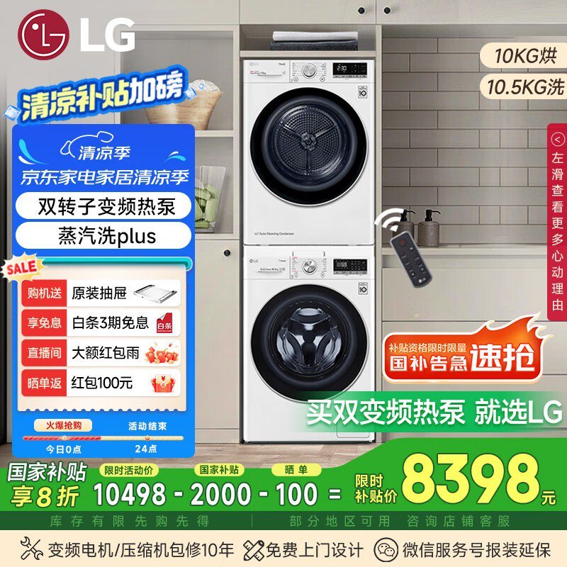 LG洗烘套装京东促销,原价10498现9998